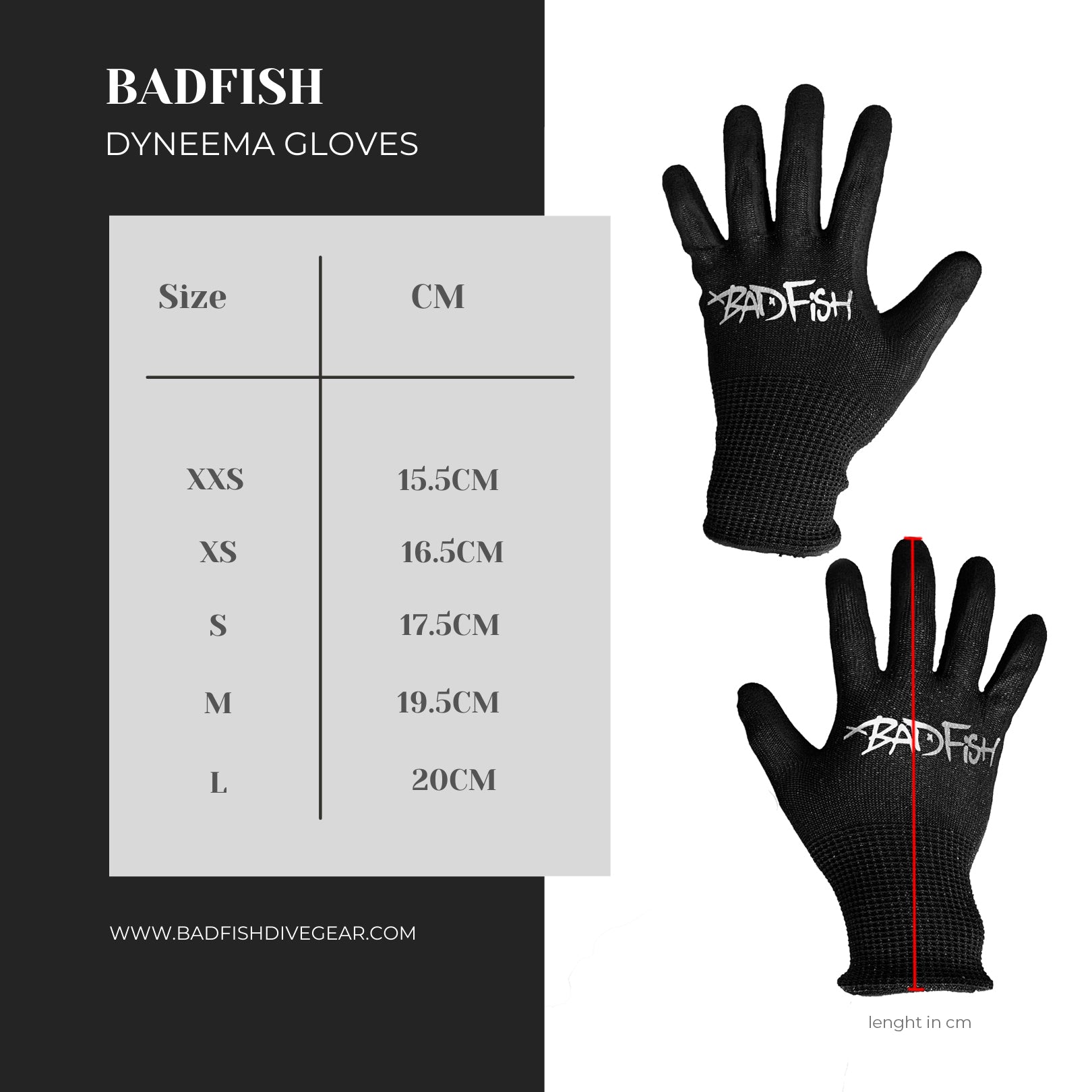 The Badfish dyneema gloves are lightweight and really hug the hands well. Unlike neoprene gloves, dyneema gloves don't feel bloated on the water and are made of a stronger material to protect your hands from accidental cuts. For freedivers, these gloves will protect your hands from jelly stings, sharp rocks, and sunburn. For spearos, dyneema gloves are simply essential!